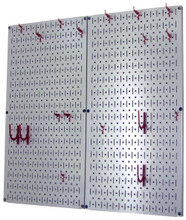 Pegboard inspired by Julia Child style kitchen pegboard storage and organization for pots pans and kitchen supplies, Wall Control's chic Kitchen Pegboard Pots and Pans Pegboard Organizer Storage and Organization Kit has kitchen storage and organization needs covered. Wall Control combines the simplicity inspired by a Julia Child pegboard storage and organization system with the modern touches of a high end kitchen by creating attractive wall mounted pegboard storage with strong and durable chic metal pegboard panels that will last a lifetime and are over 10 times stronger than conventional kitchen pegboard. Two 16in x 32in galvanized steel pegboard panels combine for a total kitchen storage area of 32in x 32in, over 7 Square Feet of kitchen pegboard storage space and you can always add more kits to create a larger kitchen pegboard storage area. The pegboard panels offer both slots and holes to accept modern chic slotted tool board accessories as well as conventional 1/4in Julia Child style peg board hooks making this pegboard extremely versatile by allowing for a wide range of kitchen pegboard hooks and supplies. The chic slotted tool board hooks included improve hook stability for more hassle free kitchen supplies storage and organization. Versatile, durable, and attractive metal pegboard panels are an easy-to-use kitchen supplies storage solution for kitchen utensils or pots and pans. The metal pegboard panels are easy to install into studs or walls and install in a matter of minutes. A built-in frame provides ample hook clearance and full access to all holes without requiring additional framework or using up pegboard holes for mounting. Mounting hardware is included. Wall Control Kitchen Pegboard Products are Made in USA.