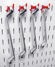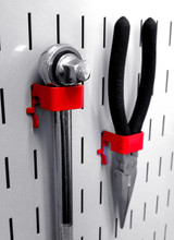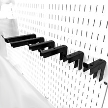 Wall Control accessories, including our pegboard hooks, shelves, and brackets, feature an attractive finish and stable engagement. The powder-coated metal pegboard accessories feature a scratch and rust resistant baked-on finish that will last for years. These secure and stable accessories are for use with the slots found in all Wall Control Metal Pegboard tool board full sized panels.